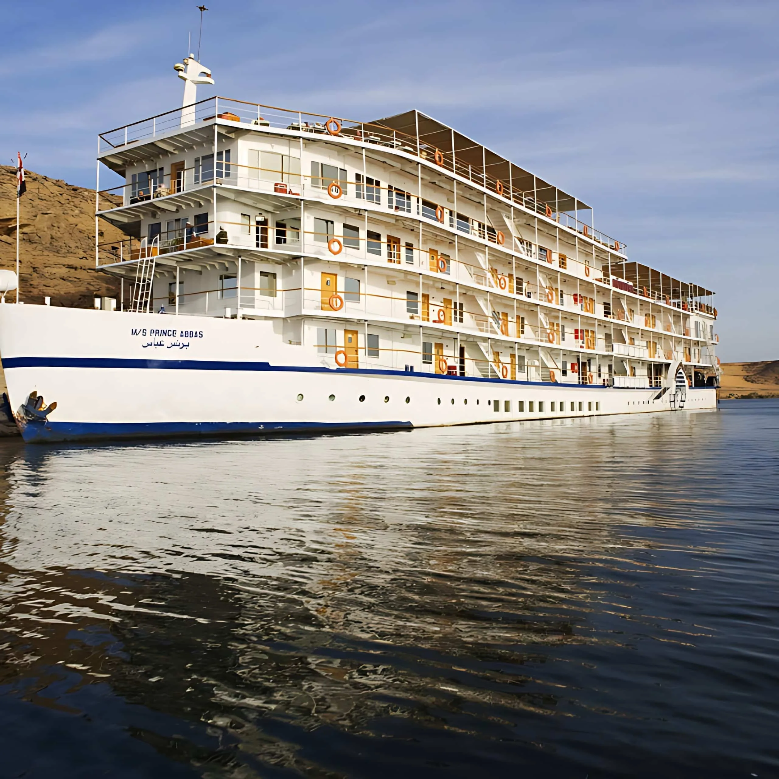 Enjoy your first freshly prepared lunch onboard as the tranquil waters of Lake Nasser stretch around you.