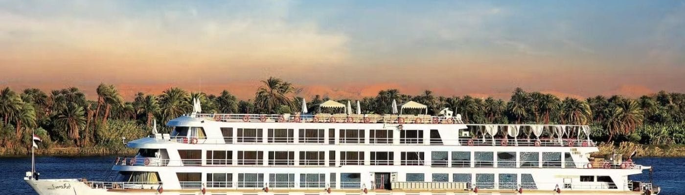 It’s a luxury five-star Nile Cruise, renowned for its boutique style, elegant Art Deco design, and exceptional personalized service. This vessel has 38 cabins, including 2 Royal Suites, 2 Presidential Suites, and 34 Standard Cabins — all designed to ensure privacy, comfort, and panoramic Nile views.