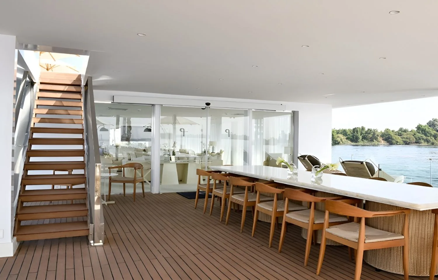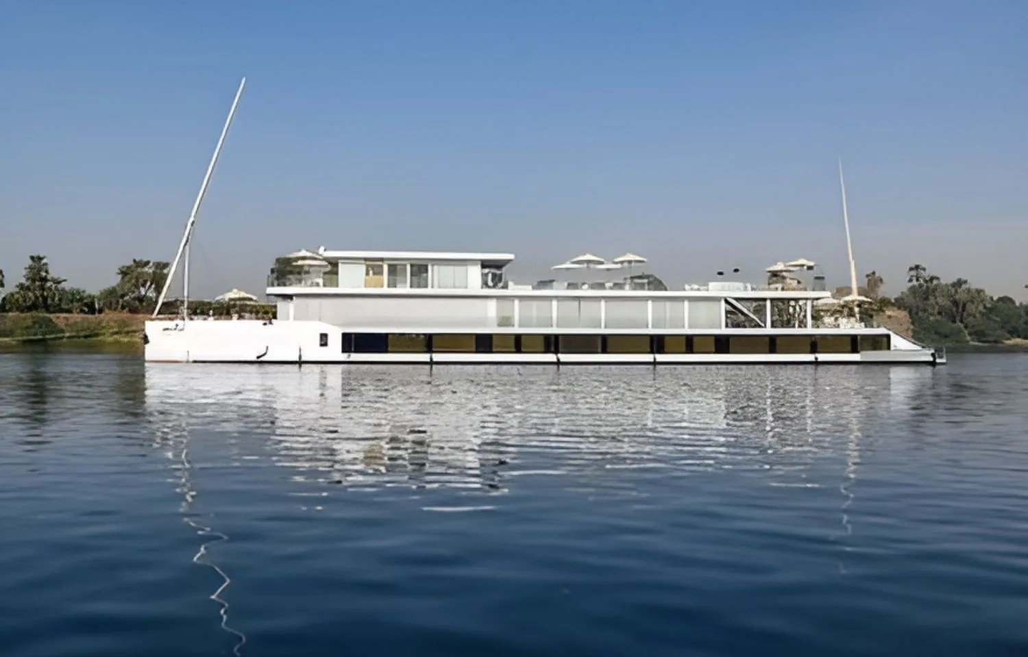 The Kazazian Arax Dahabiya offers a luxurious and comfortable cruise along the Nile. At 60 meters long and 9 meters wide, it features 5 spacious cabins (26 square meters each), 2 suites (39 square meters), and a stunning owner’s suite with two bedrooms (140 square meters). Designed for an intimate and personalized experience, the Dahabiya combines elegant craftsmanship with premium amenities for an unforgettable journey through Egypt’s landscapes.