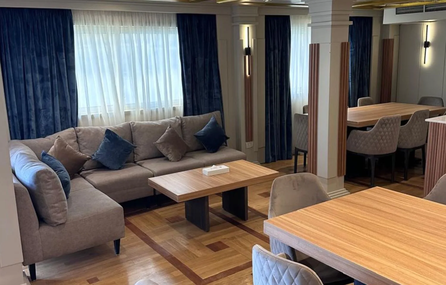 The Merit Dahabiya Luxury Nile Cruise perfectly combines modern design with traditional charm for an unforgettable journey on the Nile. At 50 meters long and 7.5 meters wide, it features 8 Twin Deluxe Cabins and 2 Large Deluxe Cabins, all designed for ultimate comfort. Unlike motorized boats, it is quietly towed by a tugboat, ensuring a peaceful, vibration-free atmosphere. Facilities include a spacious 20-meter kitchen for daily menus and advanced water treatment systems in a fully equipped motor room. With trained staff always ready to assist, this cruise guarantees a safe and luxurious experience.